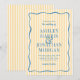 Modern - retro -and elegance, this striped wedding invitation sets the perfect tone for your special day. Featuring soft pastel yellow vertical stripes and a refined blend of classic serif and quirky retro handwritten typography in blue, this design brings together elegance and a little bit of fun.