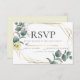 RSVP DE CASAMENTO | Flores de magnólia escamoteadas e borras amarelas de pénia, uma moldura geométrica de terrário multifacetada dourada, enfeitada com folhas de aquarelas e flores. O reverso é uma cor complementar coordenada. Personalizar texto, estilo de fonte, cor e tamanho. Arte original criada para o BarefootBride™ por © WhimsicalArtwork™ - Esta é parte de um Conjunto completo de Artes de Casamento, chá de fraldas e outros artigos de papelaria para eventos semelhantes.
