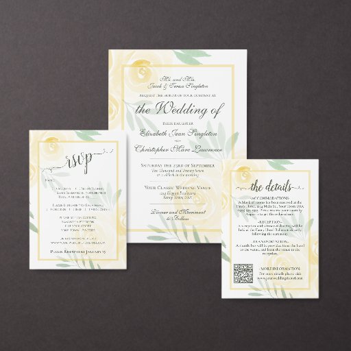 Convite Yellow or Gold Boho Roses Stylish Script Wedding