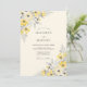This design showcases a delicate arrangement of soft yellow flowers and silver-gray foliage cascading across the backdrop. The watercolor style creates a romantic and airy atmosphere, perfect for an elegant spring or summer event. A cream-colored background enhances the warmth of the sunny petals and the cool botanical elements.