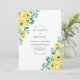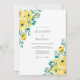 This artwork showcases a vibrant arrangement of yellow watercolor ranunculus paired with teal foliage. The design features soft blue-green leaves and delicate accent flowers that create a refreshing botanical aesthetic. Hand-painted textures and a bright color palette offer a cheerful atmosphere, ideal for a seasonal nature-themed event.