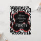 © 2013 Designs socialitas. Celebre a sua aniversário de 40 anos com este padrão de zebra sassy e chic, borda vermelha do shimmer e beleja 40 convites de texto. Um design personalizado por Designs socialitas.