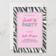 Um moderno e divertido convite de festas Sweet 16 com um fundo de impressão zebra, um quadro cor-de-rosa e rotineiro (isto é um efeito digital, não rotinas reais), rosa-quente para o título "Sweet 16" e o nome da aniversariante e a palavra "PARTY" com um efeito rotineiro. Um convite cor-de-rosa quente tão selvagem quanto seu tema.