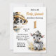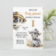 Um gráfico tridimensional divertido e trendy gerou uma imagem com uma linda e adorável zebra bebê vestindo um chapéu de safari colonial listrado com zebra e um meerkat vestindo um chapéu de arbusto casual contra um fundo branco que tem modelos de texto personalizados; um grande modelo castanho para o menino ou meninas de aniversário e listras de zebra em branco e bronzeado no verso. Estes são ideais para qualquer tema de festa de aniversário de verão da selva, safari, animal selvagem ou vida selvagem para crianças. Os downloads instantâneos incluem a parte frontal e traseira do convite.