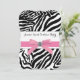 Bonito zebra rosa doce dezesseis convites de festas de aniversários. Adicione seus detalhes à parte frontal e traseira deste elegante convite de aniversário de zebra cor-de-rosa adicionando seus detalhes de evento, estilo de fonte, tamanho de fonte e cor e texto.