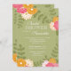 Inicie seu chá de panela na moda com nosso incrível chá de panela floral. O nosso convite para o chá de casamento de flores bonito apresenta belas mães cor-de-rosa, laranja e brancas e flores da zínnia com folhas verdes em forma de fundo verde moderno. Convite floral perfeito para o seu chá de panela primavera, chá de panela de verão ou chá de panela de outono. Visite o nosso compro para ver este convite em várias cores e por corresponder aos cartões de nota, autocolantes e selos postais.
