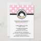 Na moda e convites bonitos para Baby Shower projetados em um padrão de bolinhas cor-de-rosa e branco, com um adorável pinguim preto arredondado, e impressos personalizados com seus detalhes de celebração.