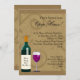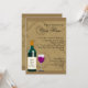 Ricos e elegantes convites de festas modernos de vinhos contemporâneos abertos! Personalizar todo o convite online, incluindo a imagem do rótulo da garrafa de vinho. Vinhos marrons arenosos com garrafa de vinho e vidro, vidros turvos de fundo.