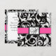 Placas RSVP de Casamento de Monograma com Damasco Rosa Quente e Negro - 2 Opções de Janto Platado para Convidados
