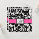 Placas RSVP de Casamento de Monograma com Damasco Rosa Quente e Preto - Para Recepções de Estilo de Buffet