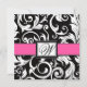 Convites de chá de panela de monograma do Damasco Preto e Rosa Quente