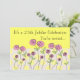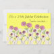 Convites de 25 da freira católica, margaridas. "É uma celebração 25 Jubileu, você é convidado". bolinhas amarelas e natas sobre fundo amarelo macio com rosas rosa desenhadas por artista. Personalizáveis.