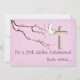Convites de 25 da freira católica, margaridas. "É uma Celebração de Jubileu 25, Você é Convidado".Fundo rosa com galho de cereja desenhado pelo artista, pomba branca com ramo de oliveira e estilo 3D combinando cruz. O retorno do convite é personalizável e deve ser concluído pelo comprador.