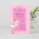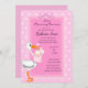 Pink dot background com uma cegonha com garotas gêmeas. Adicione os detalhes da sua festa para personalizar o convite perfeito para o chá de fraldas.
