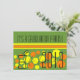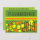 Convites para graduação de farmacêutico elegante, bolinhas laranja e amarelas sobre fundo verde com design de almofada e argamassa, "Classe 2013" personalizável no verso. *Gráficos e design por Gail Gabel