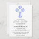 Celebre o dia especial do seu filho com estes na moda e sofisticados convites de primeira comunhão. Apresentando um belo fundo azul-d'água, um delicado design e um toque de folha de ouro, esses convites são perfeitos para uma celebração moderna e elegante. O design é personalizável para corresponder ao tema e à paleta de cores do evento.