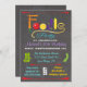 convite de festas de Foodie super legal e moderno com as palavras "foodie" feito de frutas, vegetais e massas com tipografia colorida sobre fundo de quadro. Excelente para uma festa de janto divertida, festa de aniversário ou qualquer celebração para o amante de comida! Ilustração desenhada à mão por McBooboo. Entre em contato comigo com quaisquer alterações, perguntas ou se precisar de algo personalizado!