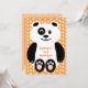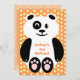 Os convites de festas de aniversários adoráveis para crianças caracterizam um fundo alaranjado com as bolinhas claras do verde limão. É no primeiro plano um urso de panda preto e branco grande, brincalhão com um sorriso grande. O urso de panda está sentando-se e na barriga branca a área da panda é sala para seu texto, que pode ser personalizado. O verso do convite tem o mesmo design alaranjado e verde das bolinhas em tons silenciado com uma área mais escura para seu texto que está na pia batismal do verde limão. o texto pode ser personalizado para serir suas necessidades. As crianças amarão este design adorável do urso de panda, especialmente aqueles que são amantes dos animais!