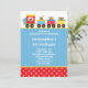 Pequenos animais adoráveis andando num trem colorido. Perfeito para convites para festas de aniversário ou chás de fraldas. Envelopes correspondentes também disponíveis.