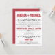 Convites modernos projetados para casamentos em que o casal tem um casamento em um destino ou uma cerimônia de casamento privada e pequena, e convida os convidados apenas para a celebração da Recepção. A tipografia na frente desses convites é projetada em fontes vermelhas Merlot e cinza, e o verso é um vermelho Merlot sólido com texto branco opcional para informações de RSVP potenciais.