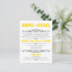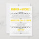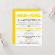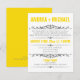 Convites modernos projetados para casamentos em que o casal tem um casamento em um destino ou uma cerimônia de casamento privada pequena, e convida os convidados apenas para a celebração da Recepção. A tipografia na frente desses convites é projetada em fontes amarelas e cinzas, e o verso é um amarelo sólido com texto cinza opcional para informações de RSVP potenciais.