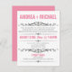 Convites modernos projetados para casamentos em que o casal tem um casamento de destino ou uma pequena cerimônia de casamento privada, e convida os convidados apenas para a celebração da Recepção. A tipografia na frente destes convites é projetada em fontes rosa e cinza, e o verso é um rosa sólido com texto branco opcional para informações de RSVP potenciais.
