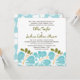 Tropical e encalhe os convites azuis temáticos do casamento do hibiscus perfeitos para um casamento havaiano do tema ou do destino. © Chrissy H. Estúdio dos trabalhos de arte, LLC. Todos os direitos reservados. Boa vinda feita sob encomenda dos pedidos da cor.
