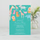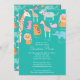 Comece seu chá de fraldas fora do direito com nossos convites preciosos do chá de fraldas dos animais da selva do bebê. Nosso convite do chá de fraldas do safari caracteriza o girafa, o tigre, o leão, a baleia & o elefante os mais bonitos ajustados em um fundo moderno do azul de turquesa. Para um toque especial extra a parte traseira de nosso safari convida características um impressão animal de harmonização do safari. Estes na moda & convite moderno são perfeitos para um chá de fraldas neutro do género, o chá de fraldas da menina ou o chá de fraldas do menino. Visite nossa loja para ver uma grande seleção de convites do chá de fraldas do safari.