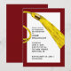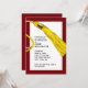 Convites de festa de formatura exclusivos com pingente de boina de formatura em dourado sobre fundo vinho.