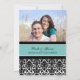 Convites da foto da festa de noivado no azul de turquesa elegante, cor damasco floral clássica preto e branco. Inteiramente customizável com seus detalhes da festa de noivado e sua própria foto. Também disponível em uma vasta gama de combinar produtos do casamento.