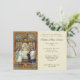 Apresentando nosso tradicional convite da Primeira Comunhão Católica com Jesus segurando o Eucarista com anjos que o oferecem a um menino e menina no altar. Os santos que os acompanham são Ruas. Aloysius Gonzaga e Ruas. Agnes. Adequado para um menino ou para a comunhão de uma menina. No verso está uma citação de escrituras com uma imagem a preto e branco do Anfitrião, Chalice, e trigo representando o Pão da Vida, Jesus. O fundo de ambos os lados é um design de rendas de naves muito leves. Fontes, textos e imagens podem ser modificados. O Chá de Rosas Shoppe também oferece coordenação entre Cartões Sagrados.