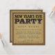 Convites abertos 2012-2013 da festa em casa da véspera de Ano Novo --Convites elegantes simples, à moda, e disponíveis da festa natalícia do ano novo para sua evento, partido de comensal, cocktail, ou celebração formal da casa aberta. Tipografia retro sofisticada e elegante do estilo da tipografia com os rolos extravagantes no lustre bonito pergaminho-como o fundo. Apenas incorpore sua informação para criar seu próprio convite personalizado original elegante e à moda da festa natalícia a preço disponível. Selos postais de harmonização de coordenação, canecas, botões, etiquetas, presentes na moda e favoritos para festas disponíveis em cima do pedido.