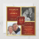 Crie seus próprios convites de festa de aniversário de casamento de 40 anos personalizados divertidos e elegantes com fotos "então e agora" - estilo rústico vintage ocidental em fundo vermelho rubi com detalhes em dourado. Personalize o nome, data e detalhes para o seu Aniversário de Bodas de Ouro. **NOTA: Tamanho para cartões de convite QUADRADOS. Outros tamanhos e estilos disponíveis.