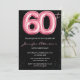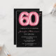 Convites de 60 anos Pretos para o 60.o aniversário Balão Glam Rosa Brilhante Brilhante Brilhante Sparkle