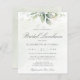 Convite de almoço de noiva lindo com eucalipto aquarela e folhas douradas.