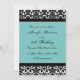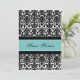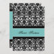 Personalizar 16º Convites de aniversário em elegante cor damasco floral clássica preto e azul-turquesa. Adicione seu nome e detalhes da festa para um convite de aniversário 16 exclusivo e na moda doce.