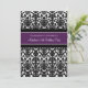 Convites de aniversário de 70 personalizados em beringelas elegantes, roxo escuro, padrão clássico e preto de damascos florais. Adicione seu nome e detalhes da festa para um convite de aniversário exclusivo e na moda.