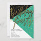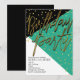 Convites de Aniversário Azul Turquesa Preto e Dourado em Bloco de Cor. Personalize para qualquer evento.
