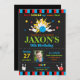 Personalize este convite de festas incrível de Boliches com o nome, a idade e os detalhes da festa do seu filho de forma fácil e rápida, basta pressionar o botão personalizar para reorganizar e formatar o estilo e a posição do texto e adicionar uma pequena foto. c) O Feliz Cat Studio