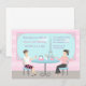 Transforme o local da festa de aniversário em um café elegante, moderno e sofisticado e tenha um chá da tarde relaxante enquanto contempla a bela Torre Eiffel ao longe. Este convite é perfeito para isso, com duas jovens senhoras vestidas de modo fashion, uma com óculos de sol e saia estampada de zebra rosa, a outra com blusa e calças elegantes. Personalize facilmente com os detalhes da sua festa na janela. Ótimo para aniversariantes dos 13 aos 25 anos.
