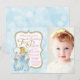 Convite de chá com linda princesa brilhante azul em um fundo desfocado azul lindo. Este convite de chá cor de rosa, azul e dourado é facilmente personalizado para o seu evento, basta adicionar sua foto e detalhes do evento no estilo de fonte e cor de sua escolha. Este é um design impresso sem brilho real.