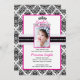 Black and White Damask Princess Photo Birthday Invitations 5X7 com Cor de Destaque Rosa - Criada por Colorful Design Inc. Copyright 2012. Todo texto pode ser modificado.