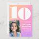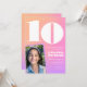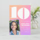 Convites de aniversário de 10 anos rosa laranja com gradiente de foto retrô