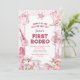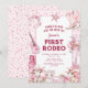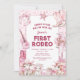 Capture o espírito animado do Velho Oeste com nossos convites de primeiro aniversário! Personalize uma encantadora cena do deserto adornada com confetes cor-de-rosa, cavalos, vacas e itens icônicos de cowgirl. É o primeiro rodeio da sua pequena, e confie em nós, esses convites vão torná-lo inesquecível.
