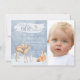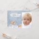 Convite de festa de aniversário de um ano no onederland de inverno com adoráveis animais da floresta em aquarela em um lindo fundo azul com flocos de neve e espaço para foto. Este convite de aniversário de um ano no onederland de inverno com cervo, raposa, coelho e esquilo é facilmente personalizado para o seu evento, basta adicionar os detalhes do evento, e funciona bem para menino ou menina.