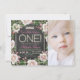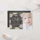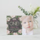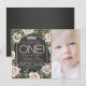 Convites de aniversário de 1 ano para meninas com lousa com rosas vintage e tiara bonita em um fundo de pérolas e lousa. Esses convites de aniversário de 1 ano com lousa são facilmente personalizados para o seu evento, basta adicionar sua foto e detalhes do evento. Você também pode remover a tiara. Este é um design impresso sem pérolas reais, etc.