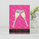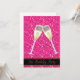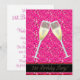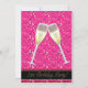 Convites de Aniversário de 21 anos com copos de champanhe preto e dourado e lantejoulas rosas.