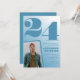 Convites de aniversário de 24 anos para ele com gradiente azul e foto retrô