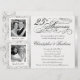 Convites Elegantes de Aniversário de Casamento -- Altere o número para qualquer ano que esteja sendo celebrado. Recorte em damasco prateado -- 2 inserts de fotos para "então e agora" com letras em script vintage e acentos retrô. Facilmente personalizado e único por você! Basta carregar suas fotos e adicionar os nomes, data e detalhes para a celebração do seu Aniversário de Casamento. Perfeito para enquadrar como presente. **NOTA: Tamanho para cartões de convite GRANDES 6,5 x 8,75. Clique em "Personalizar" para alterar o tamanho e o tipo de letra. Outros tamanhos e estilos disponíveis na galeria. Teri Francis. Selos e cartões de agradecimento correspondentes disponíveis mediante solicitação.