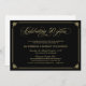 Convites de Aniversário de 50 Anos formais com um design de letras preto e dourado. Ótimo para uma festa de aniversário de casamento de 50 anos formal ou jantar de aniversário. Personalize o texto do modelo com as informações da sua festa.
